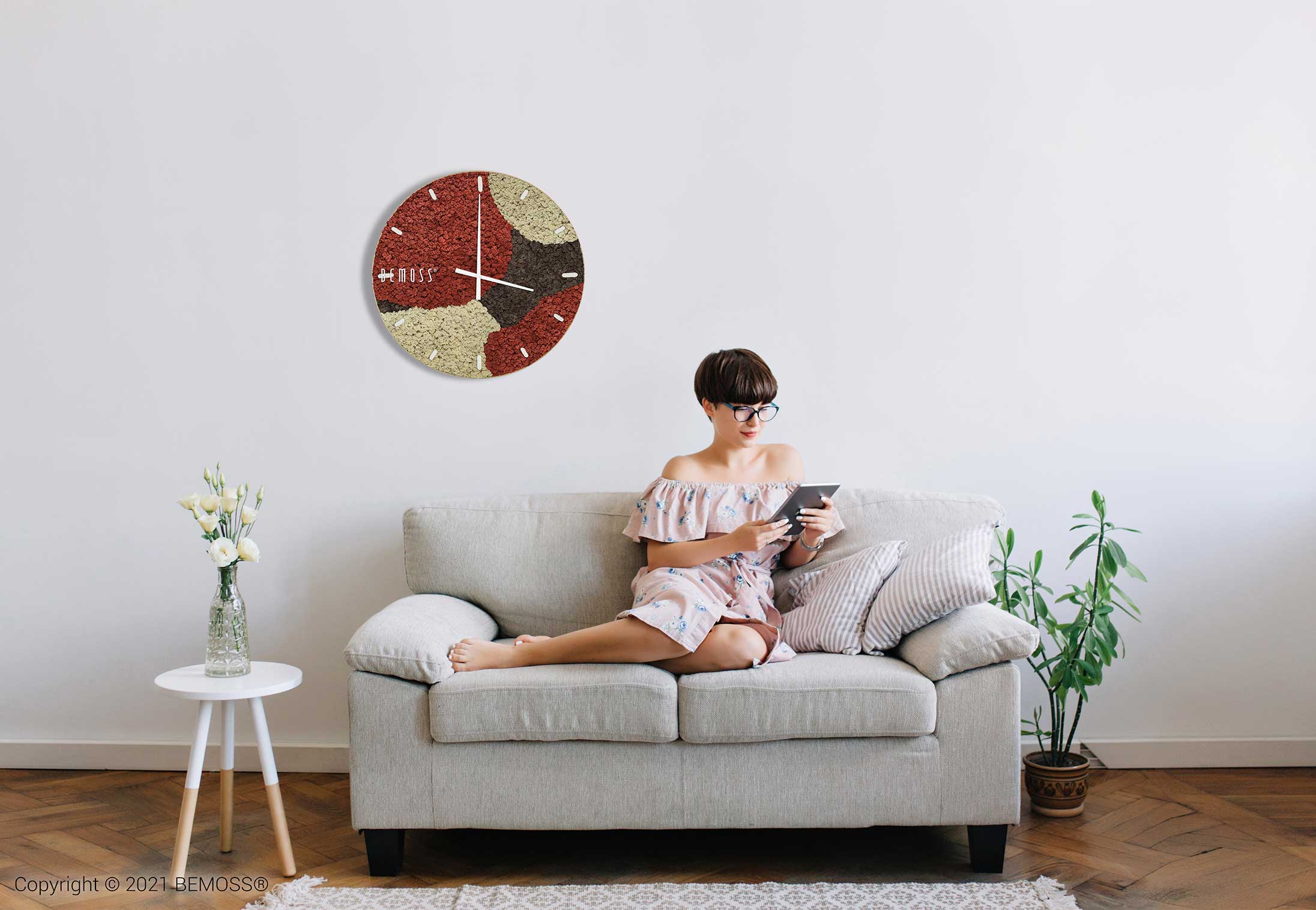 Mos klok BEMOSS® ORTHO SIENNA met wijzerplaat