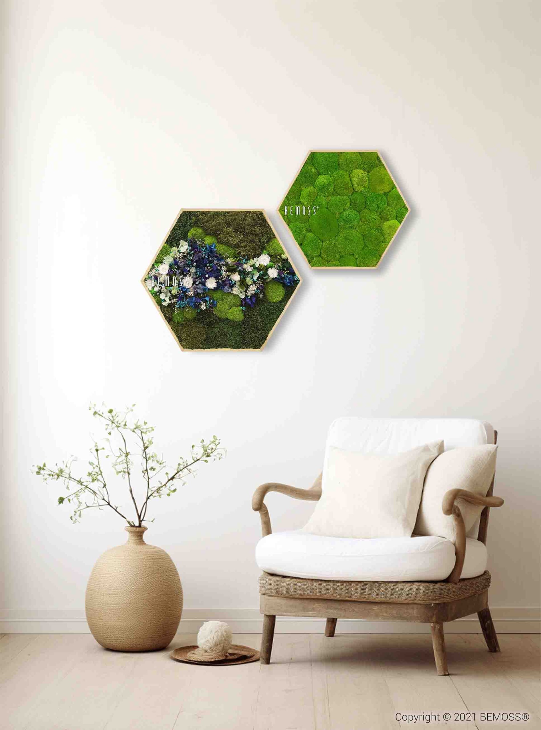 Alle mosschilderijen worden stuk voor stuk met de hand gemaakt, met de nadruk op kwaliteit en oog voor detail. Alle BEMOSS® producten worden met de hand gemaakt in Slowakije. Mosschilderijen en -wanden zijn gemaakt van 100% natuurlijk materiaal dat door een speciaal proces in een stabiliserende oplossing is gestabiliseerd. Hierdoor zijn alle mosschilderijen, moswanden en gestabiliseerde planten onderhoudsvrij en hebben ze geen daglicht of water nodig voor hun bestaan. De levensduur van BEMOSS® mosschilderijen en -muren is meerdere jaren. Om de langst mogelijke levensduur van schilderijen en muren te behouden, is het essentieel om deze in acht te nemen: