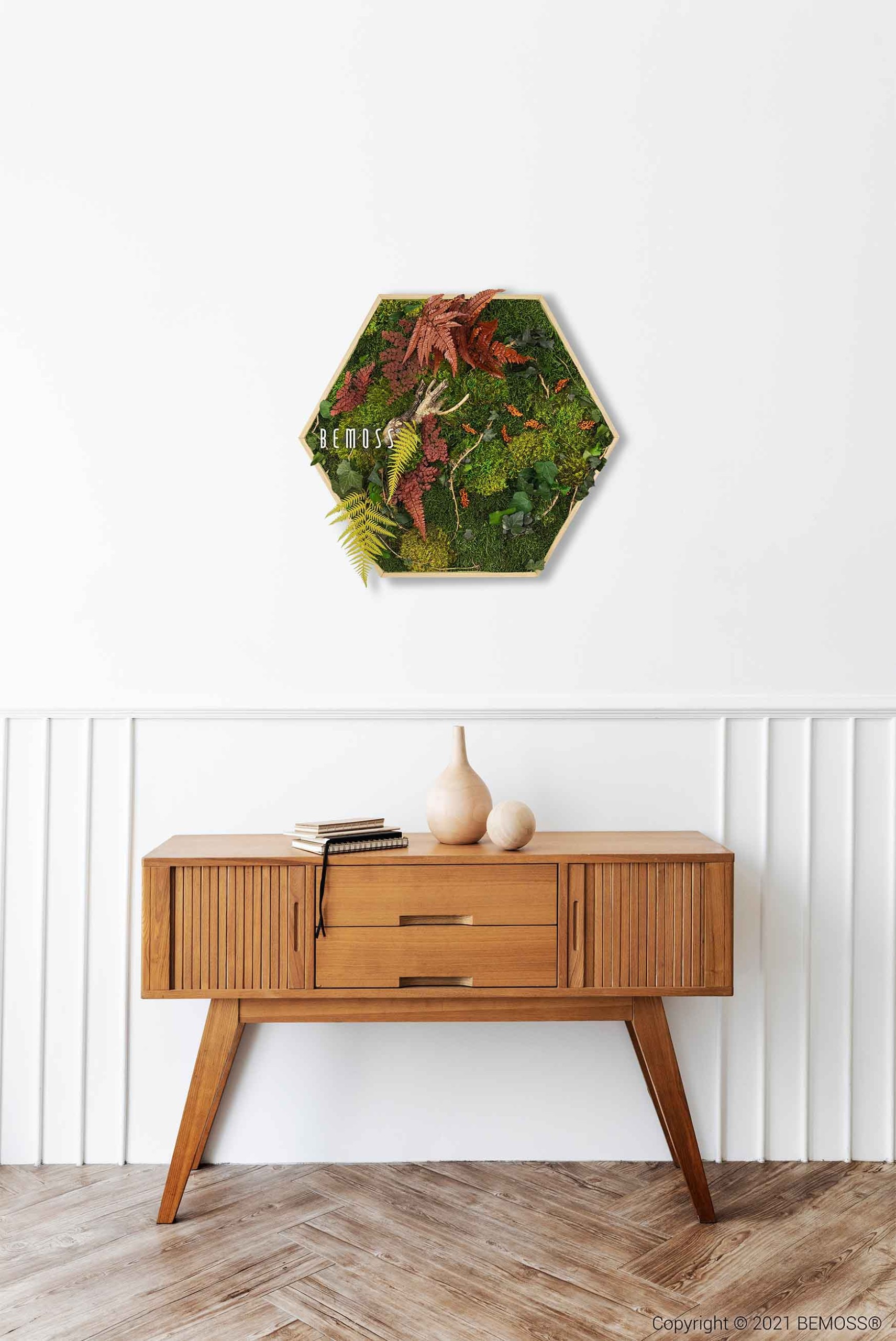 Alle mosschilderijen worden stuk voor stuk met de hand gemaakt, met de nadruk op kwaliteit en oog voor detail. Alle BEMOSS® producten worden met de hand gemaakt in Slowakije. Mosschilderijen en -wanden zijn gemaakt van 100% natuurlijk materiaal dat door een speciaal proces in een stabiliserende oplossing is gestabiliseerd. Hierdoor zijn alle mosschilderijen, moswanden en gestabiliseerde planten onderhoudsvrij en hebben ze geen daglicht of water nodig voor hun bestaan. De levensduur van BEMOSS® mosschilderijen en -muren is meerdere jaren. Om de langst mogelijke levensduur van schilderijen en muren te behouden, is het essentieel om deze in acht te nemen: