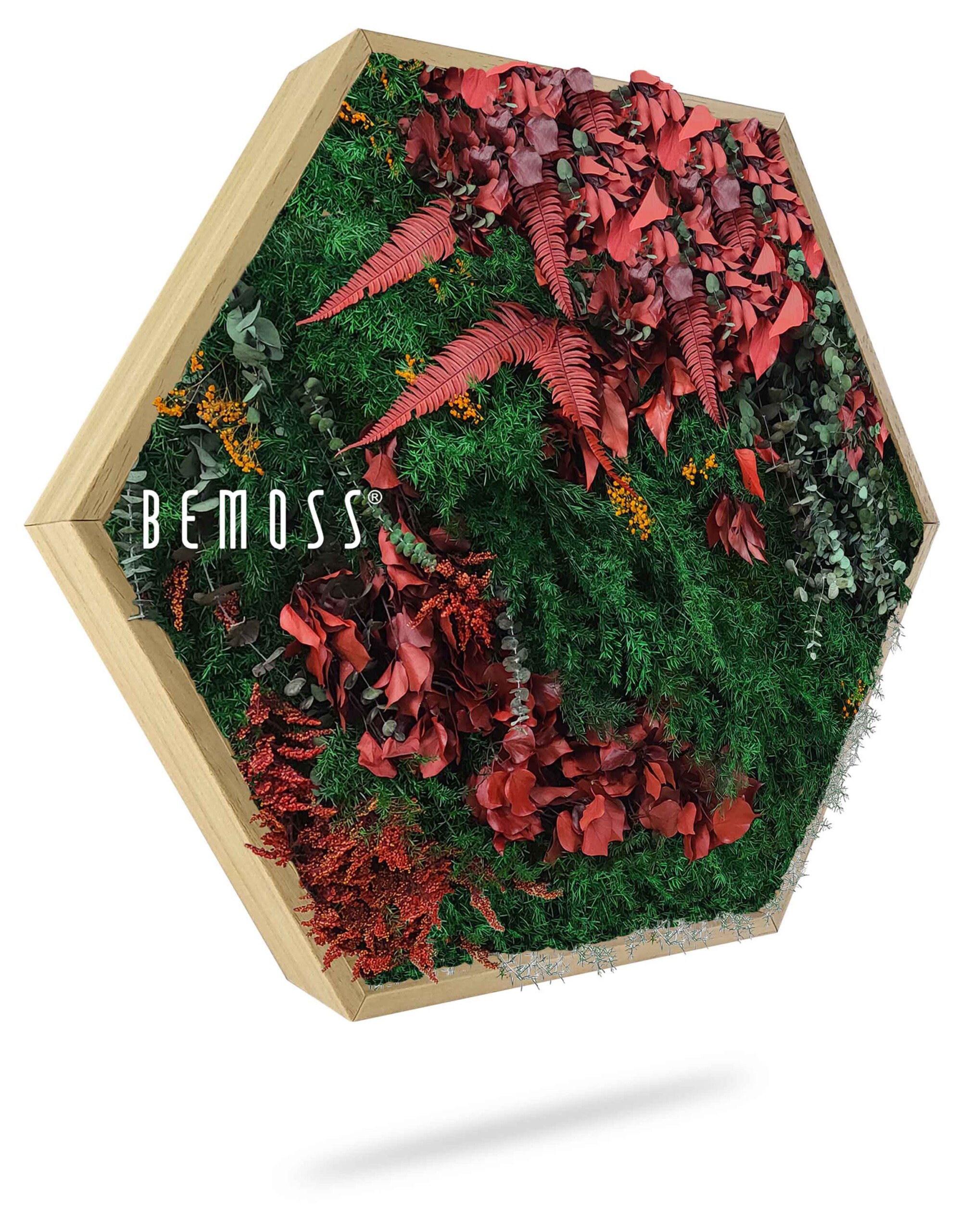 Voor het HEXAGON PLANTEN mosschilderij kunt u kiezen uit verschillende soorten houten lijsten.