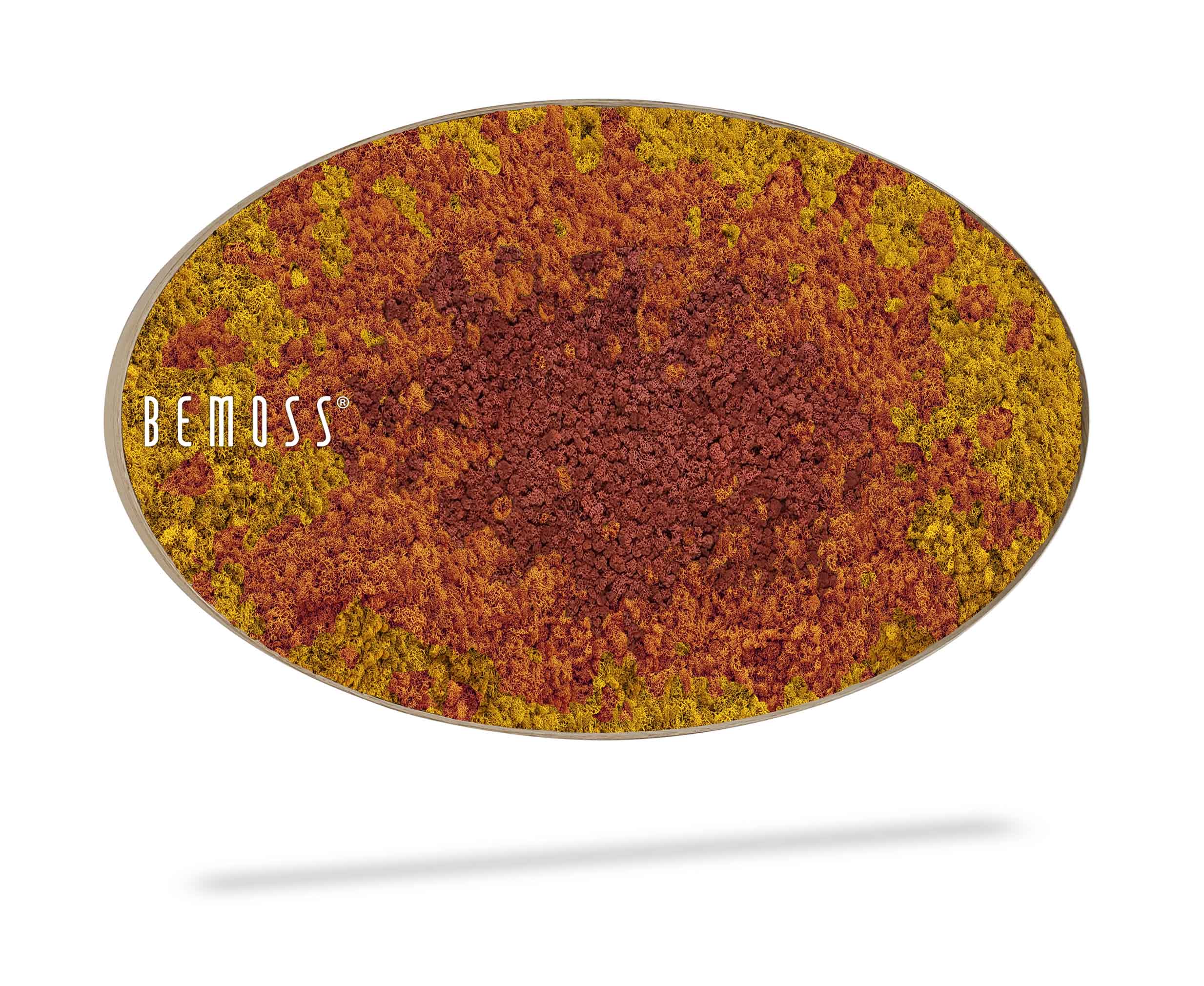 De BEMOSS® SPLASH Sienna Siennamosschilderij kan in verschillende houten lijsten gekozen worden. De afbeelding is slechts een illustratief beeld van het product, het toont een ellips met afmetingen 50x100cm. Er worden getypte formaten geproduceerd, maar het is natuurlijk mogelijk om een schilderij van elk formaat volgens uw wensen te vervaardigen. Schrijf ons gewoon op eshop@bemossnl.nl