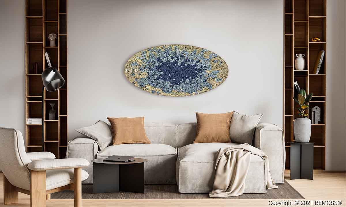 De BEMOSS® SPLASH mosschilderij kan in verschillende houten lijsten gekozen worden. De afbeelding is slechts een illustratief beeld van het product, het toont een ellips met afmetingen 50x100cm. Er worden getypte formaten geproduceerd, maar het is natuurlijk mogelijk om een schilderij van elk formaat volgens uw wensen te vervaardigen. Schrijf ons gewoon op eshop@bemossnl.nl