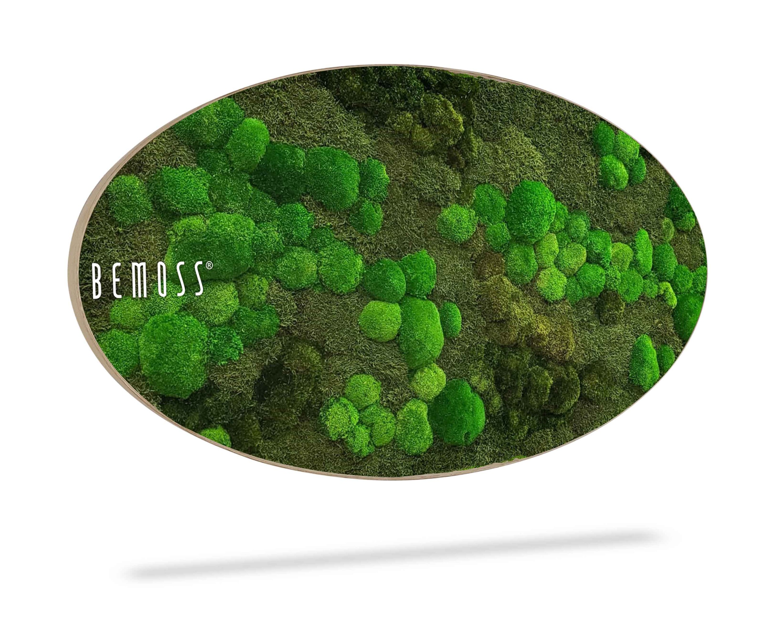 De BOLMOSS mosschilderij kan in verschillende houten lijsten gekozen worden. De afbeelding is slechts een illustratief beeld van het product, het toont een ellips met afmetingen 50x100cm. Er worden getypte formaten geproduceerd, maar het is natuurlijk mogelijk om een schilderij van elk formaat volgens uw wensen te vervaardigen. Schrijf ons gewoon op eshop@bemossnl.nl