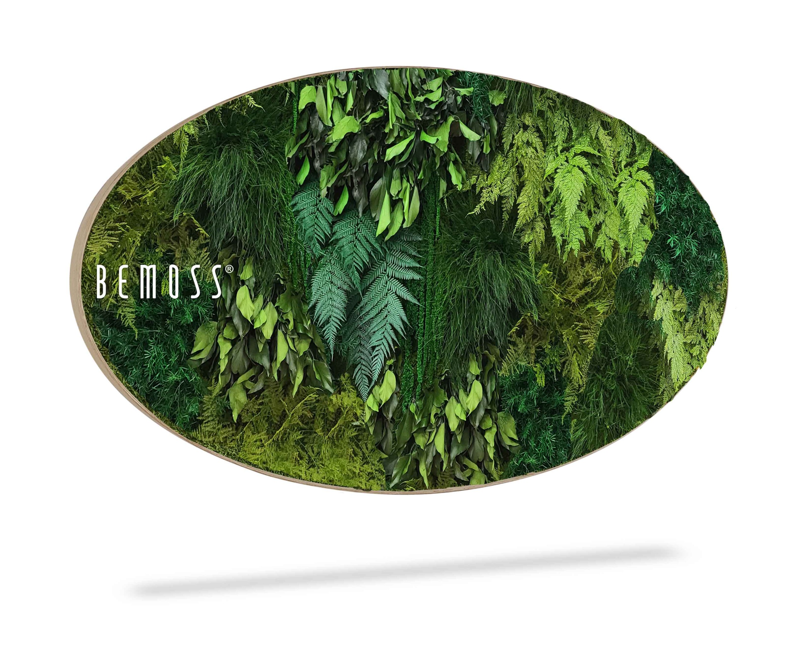 De PLANTEN mosschilderij kan in verschillende houten lijsten gekozen worden. De afbeelding is slechts een illustratief beeld van het product, het toont een ellips met afmetingen 50x100cm. Er worden getypte formaten geproduceerd, maar het is natuurlijk mogelijk om een schilderij van elk formaat volgens uw wensen te vervaardigen. Schrijf ons gewoon op eshop@bemossnl.nl